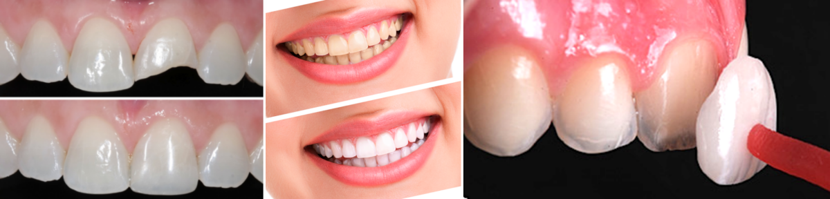 – Restauracoes com resina composta e porcelana; clareamento dental; adequação do formato dos dentes, laminados cerâmicos (“lentes de contato”).